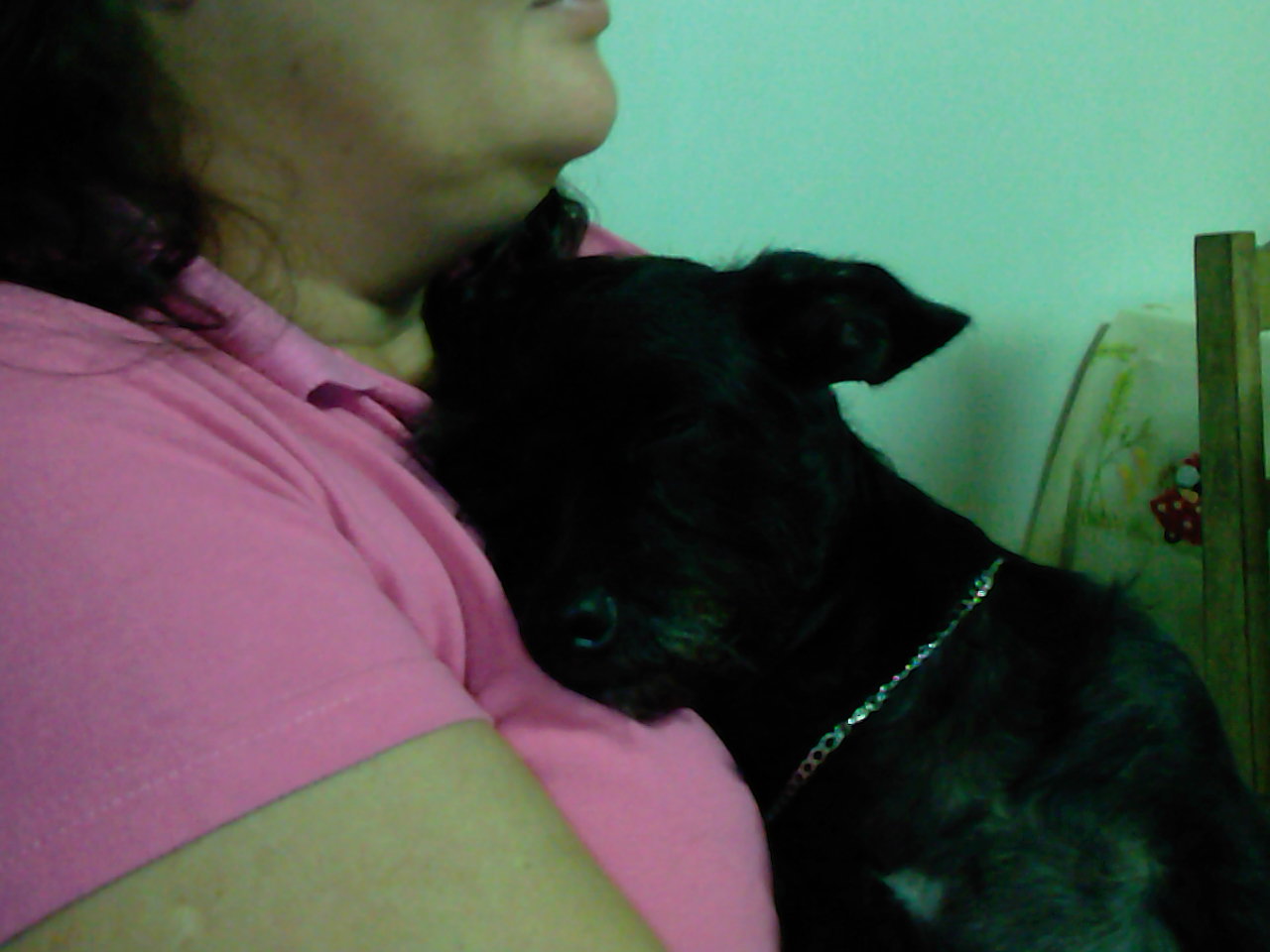 - Judi é mistura, a mamãe era uma maltesa linda e o papai um pintcher. É uma cachorrinha muito querida e companheira, caminha diariamente comigo por uma hora. Amamos ela muito.